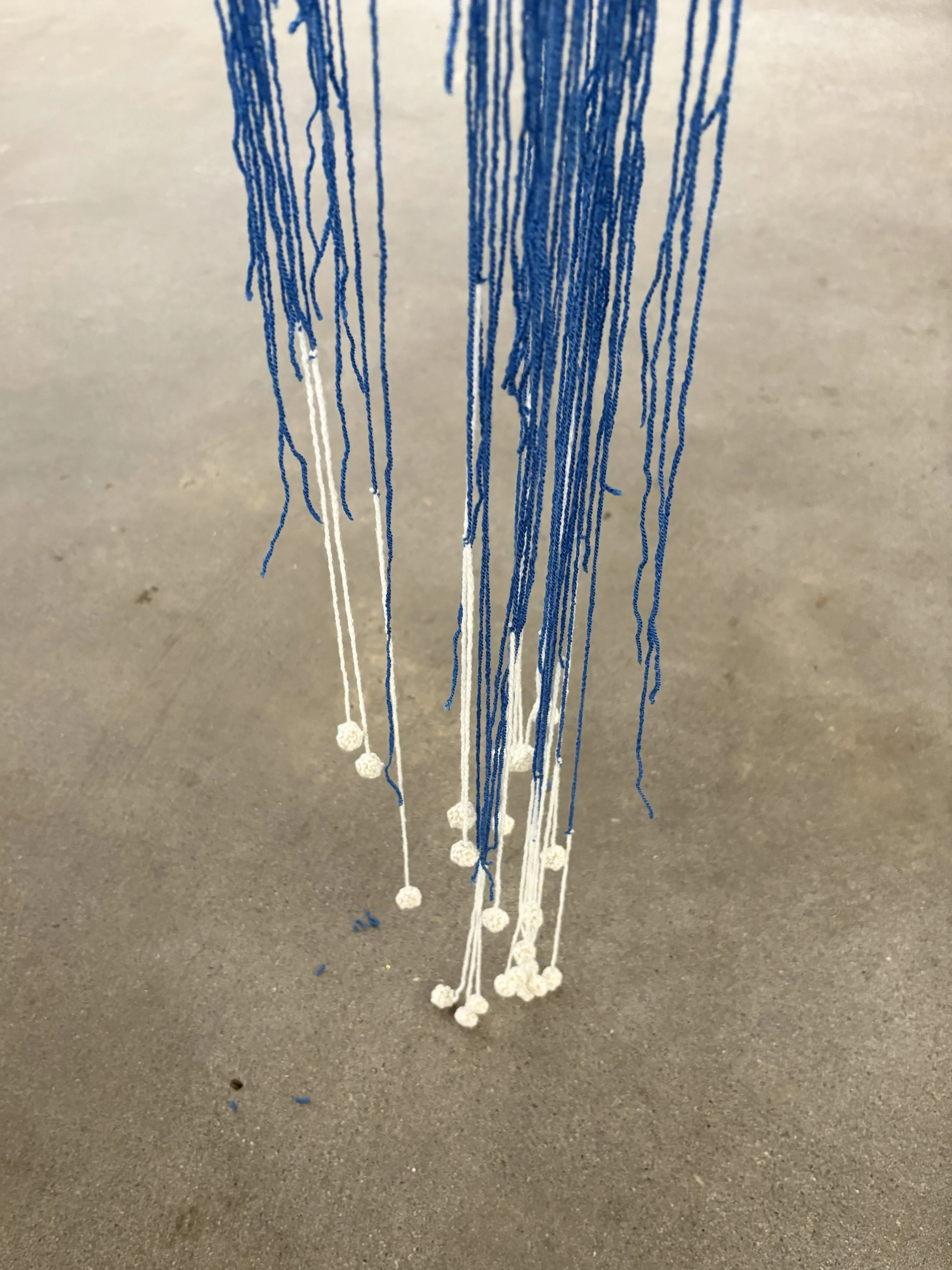 2x2x3ft cardboard, sheepskin hide, colored popsicle sticks sculpture